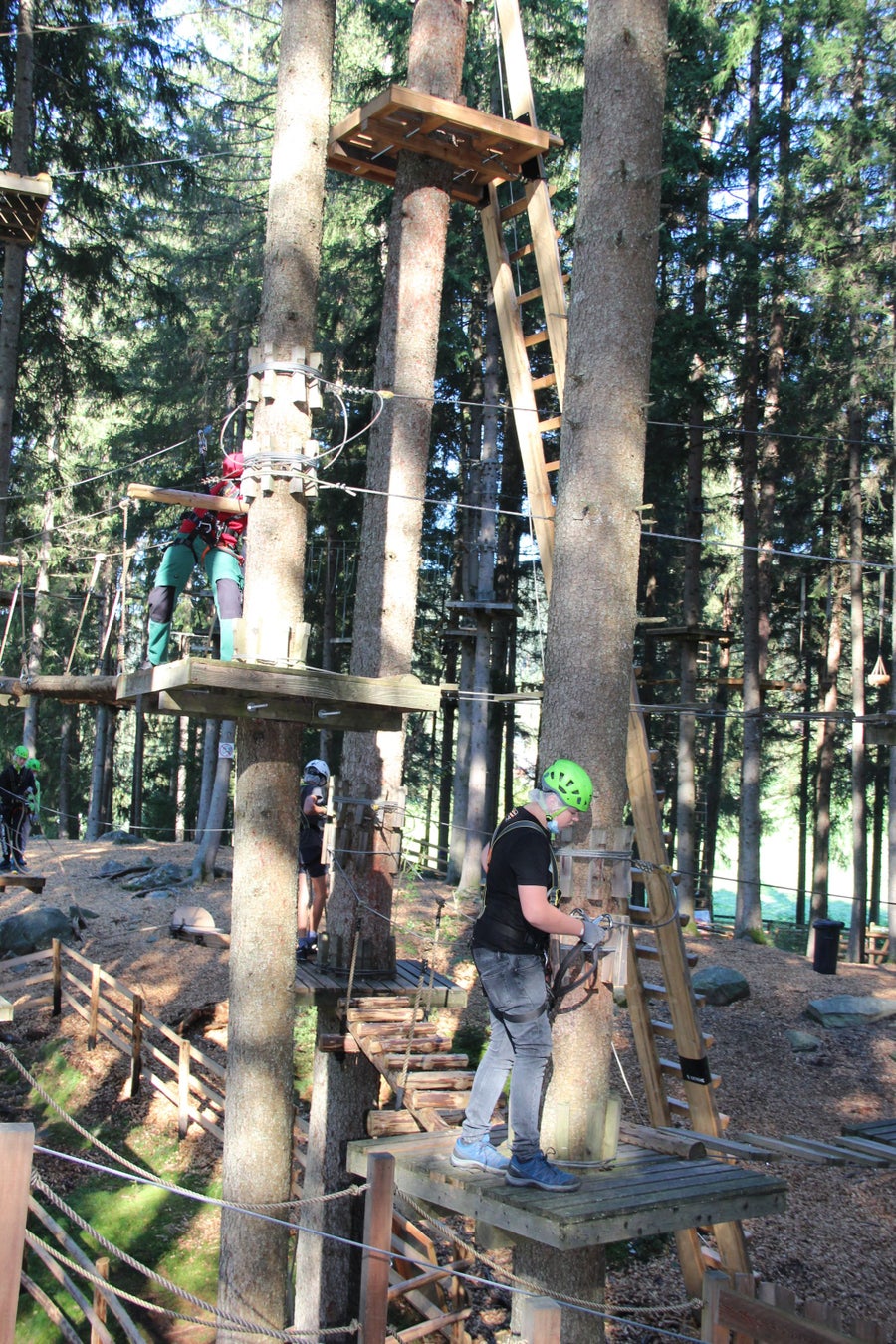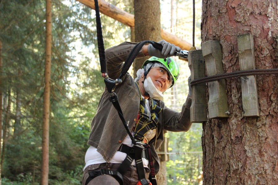 Um diesen Prozess positiv zu unterstützen, haben die Schüler*innen der ersten Klassen der Fachschule Salern einen gemeinsamen Outdoortag im Klettergarten Kronaktion am Issinger Weiher verbracht und in Kleingruppen die Latschenölbrennerei „Bergila“ besichtigt.